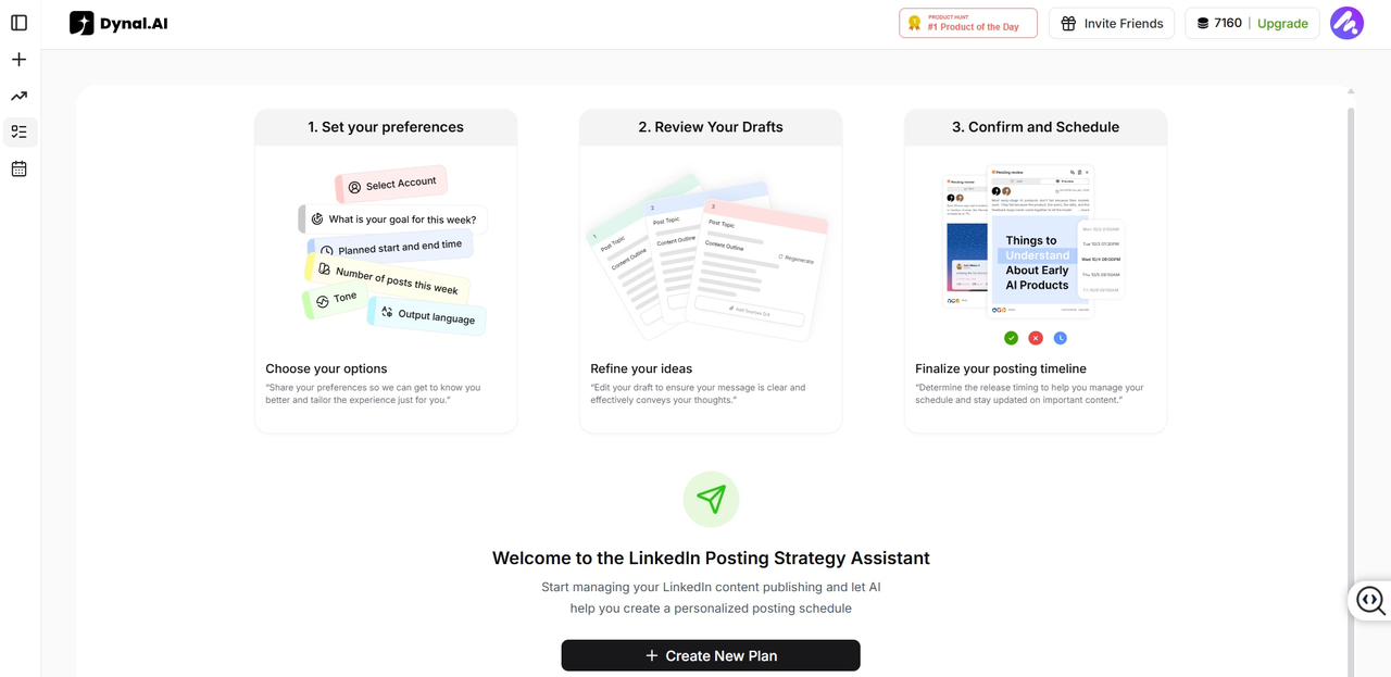 In today's digital landscape, building a meaningful presence on LinkedIn isn't just about showing up—it's about standing out. Professionals across industries struggle to consistently create content that resonates, drives engagement, and establishes genuine thought leadership. While numerous AI tools promise to streamline your LinkedIn strategy, most simply automate posting schedules or generate generic content that lacks your unique voice and perspective.Enter Dynal.AI—the first truly user-centric LinkedIn agent designed to bridge the gap between your expertise and impactful publishing. Unlike conventional automation tools, Dynal.AI functions as your personal content strategist, writer, and publishing assistant, adapting to your unique style, goals, and audience to help you build authentic influence without the overwhelming time investment.