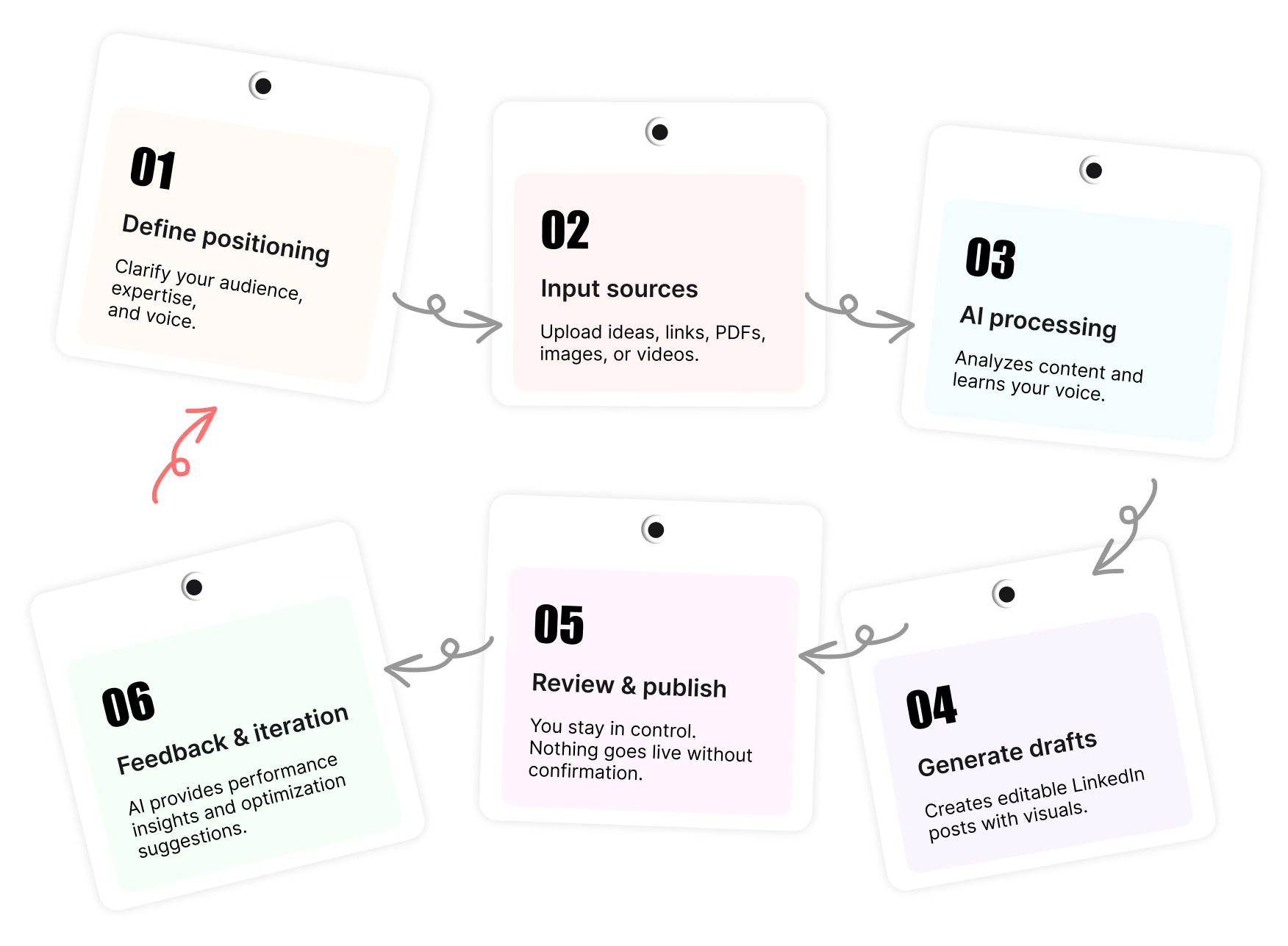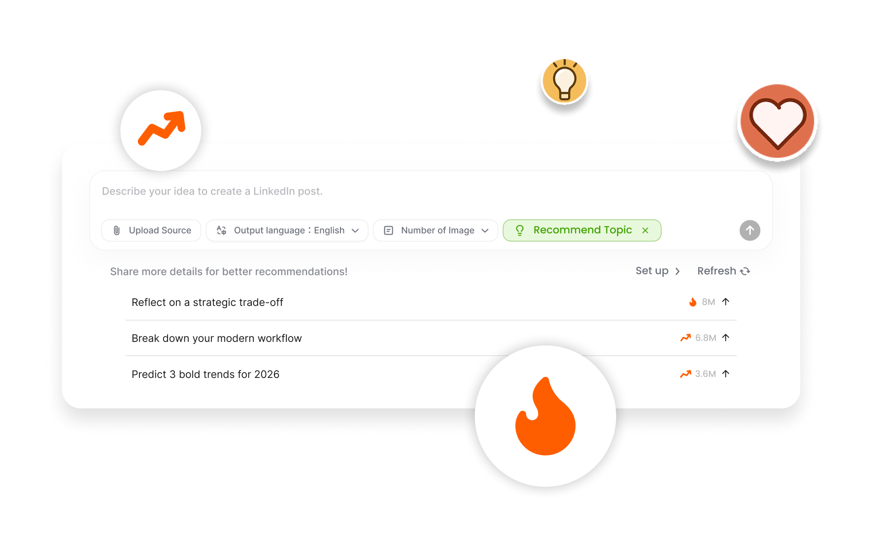 Trasforma idee, link, PDF, immagini e video in contenuti per LinkedIn.